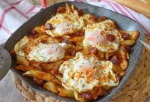 Para montar a francesinha aqui em casa faço 1fatia de pão de forma, chouriço, fiambre e queijo por cima, coloco a carne e as salsichas em cima da carne, volto a colocar chouriço, fiambre e queijo, tapo com outra fatia de pão de forma e por cima coloco novamente fiambre e queijo a tapar todo o pão (quem gostar pode colocar um ovo estrelado em cima também). Levo ao forno a derreter o queijo e no final é só colocar o molho por cima de cada francesinha. Sirvo normalmente acompanhada com batatas fritas